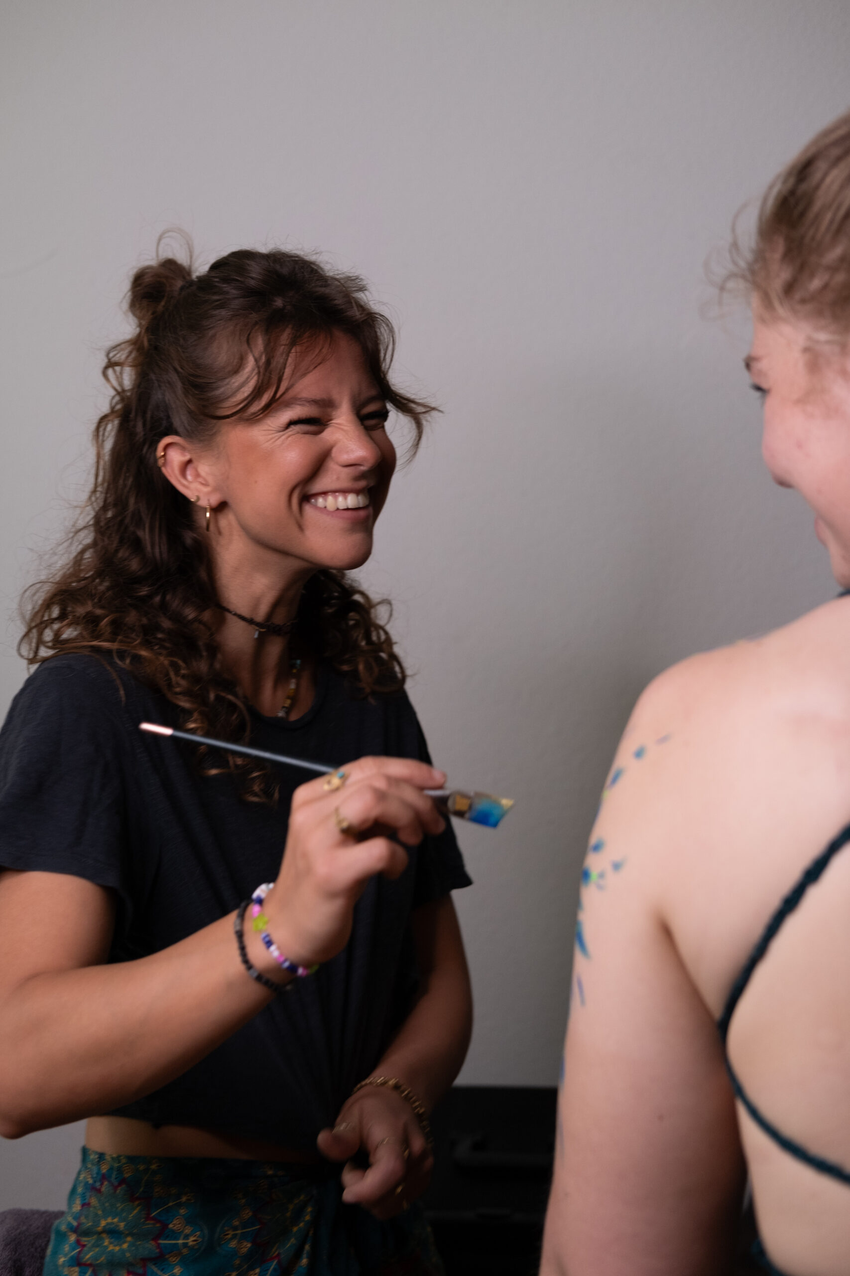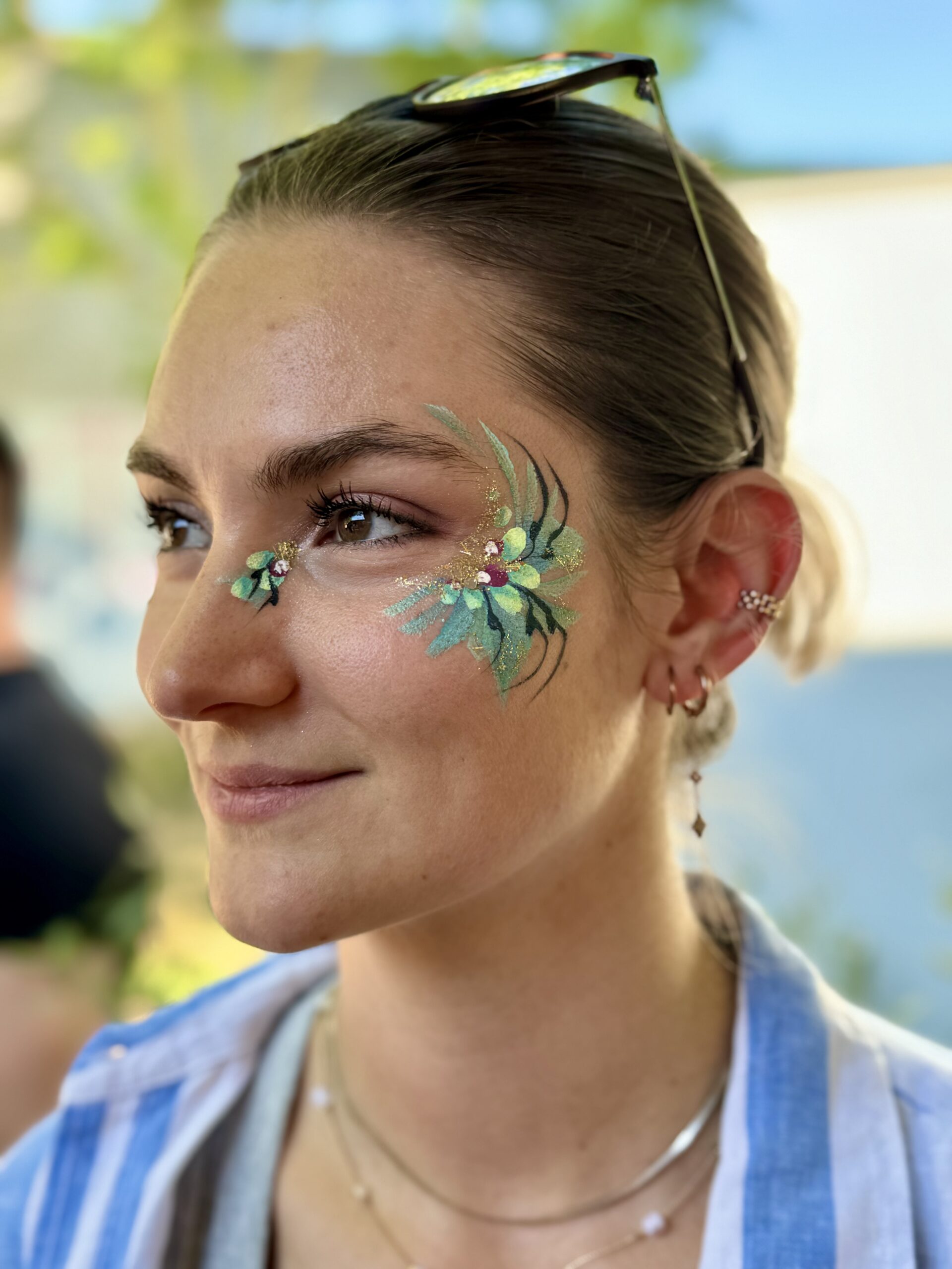 Polterabend Painting Actionmu2025-11-04T15:26:12+01:00 Lass dich und deine Mädels vor der Party Ibiza like bemalen und beglitzern. Bringe deinen Painting- und Glitzercorner zu dir nach Hause oder wo auch immer ihr für längere Zeit seid. Ich freue mich auf deine Nachricht und einen lustigen Nachmittag! anfrage sendenPainting- und Glitzercorner für deinen Polterabend:Bei der Polterabend Painting Action ist inkludiert: Facepaintings und Glitzer im Ibiza Stil für dich und deine Partymäuse Auf dich abgestimmt. Je nach Wunsch edel mit weißen, silbernen und goldenen Elementen oder mit knallig bunten neon Farben. Bis zu 12 Personen Ich komme zu dir nach Hause oder wo auch immer ihr für längere Zeit seid. Materialkosten und Anfahrt innerhalb Wiens ist bereits inkludiert. Polterabend Painting Action€250*Facepainting- und Glitzer- StylingDauer max 2 StundenBis zu 12 PersonenKleines Brautgeschenk*exkl. Anreise-Kosten von € 0,50 pro km (außerhalb Wiens) anfrage senden